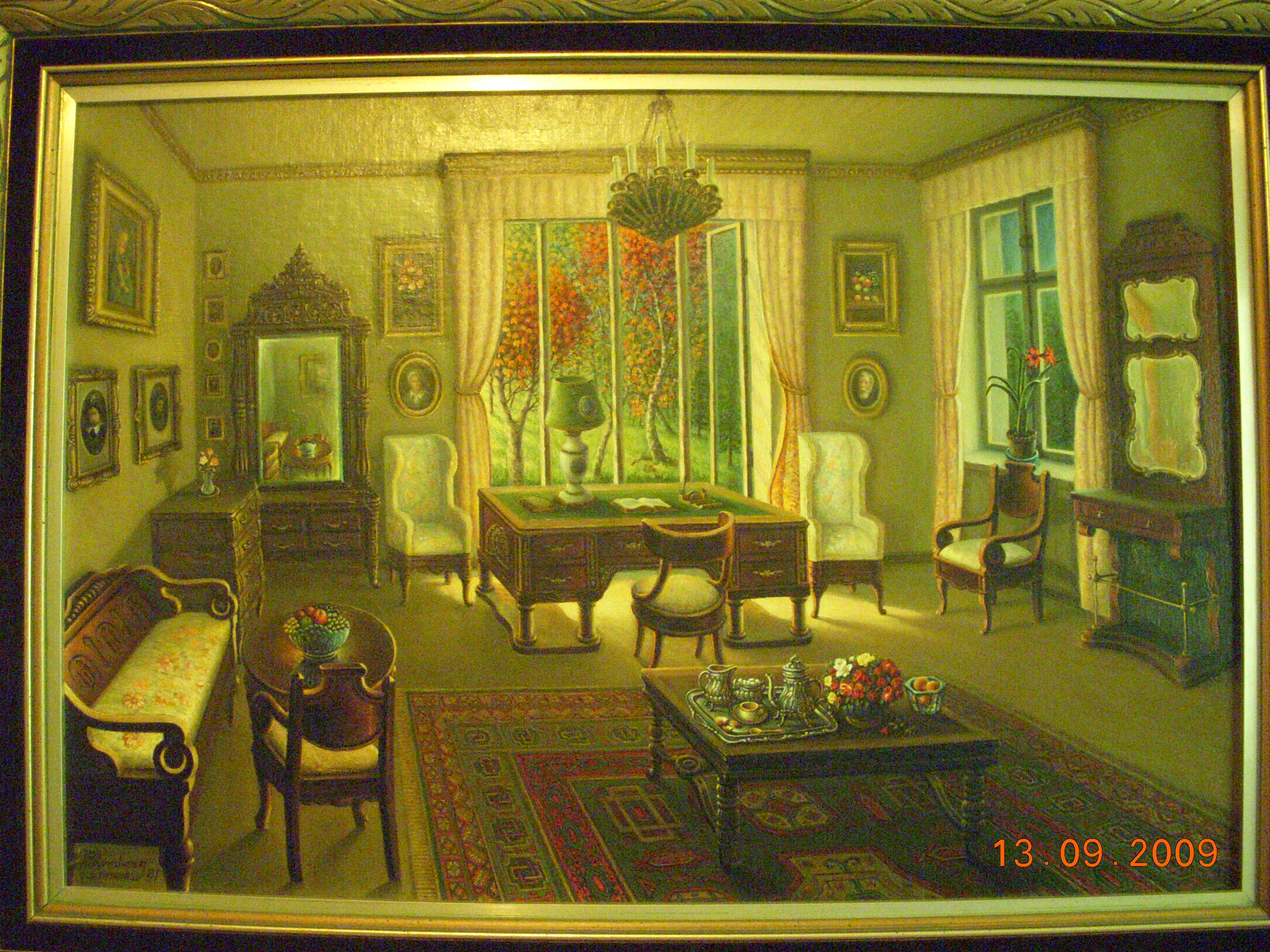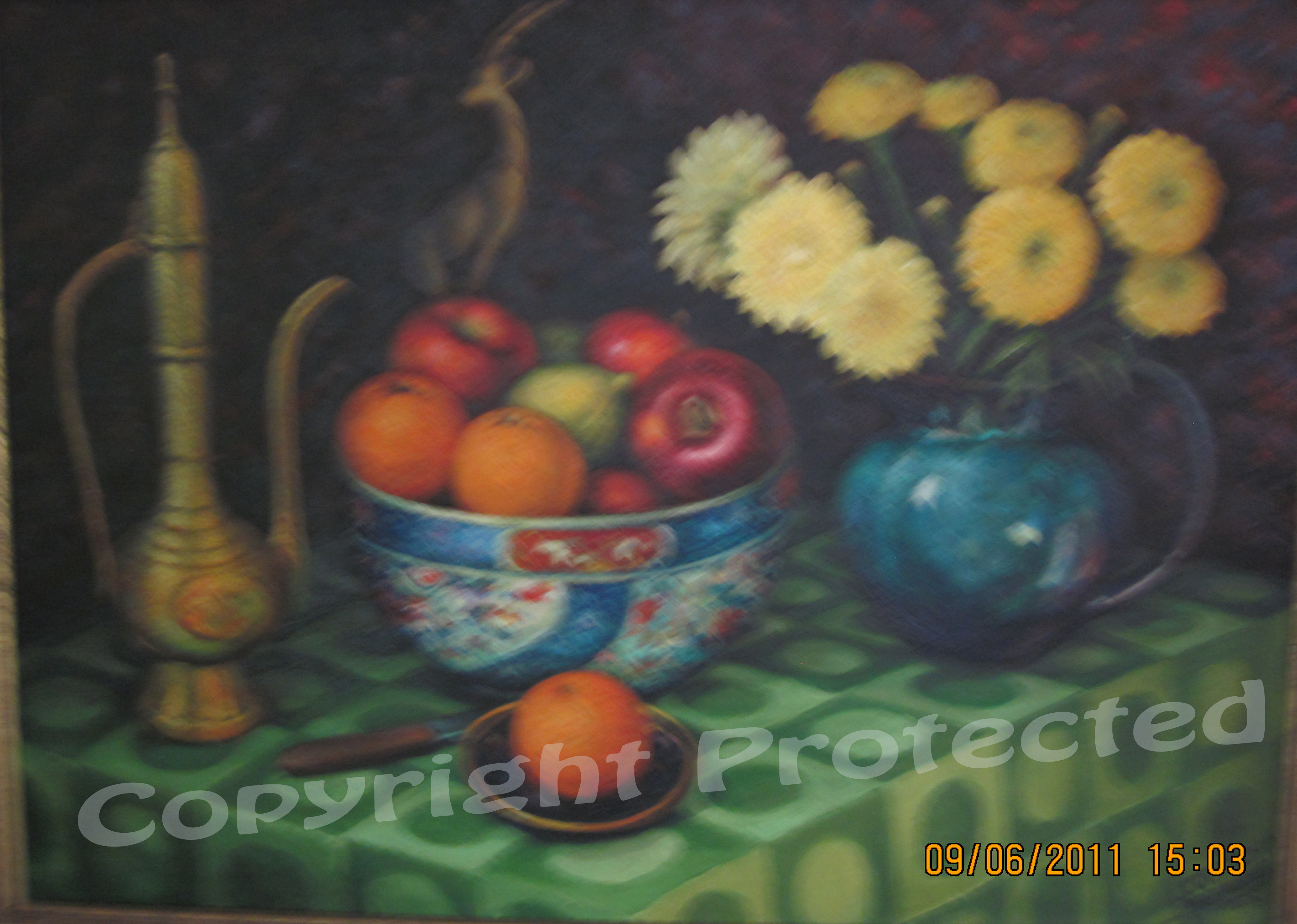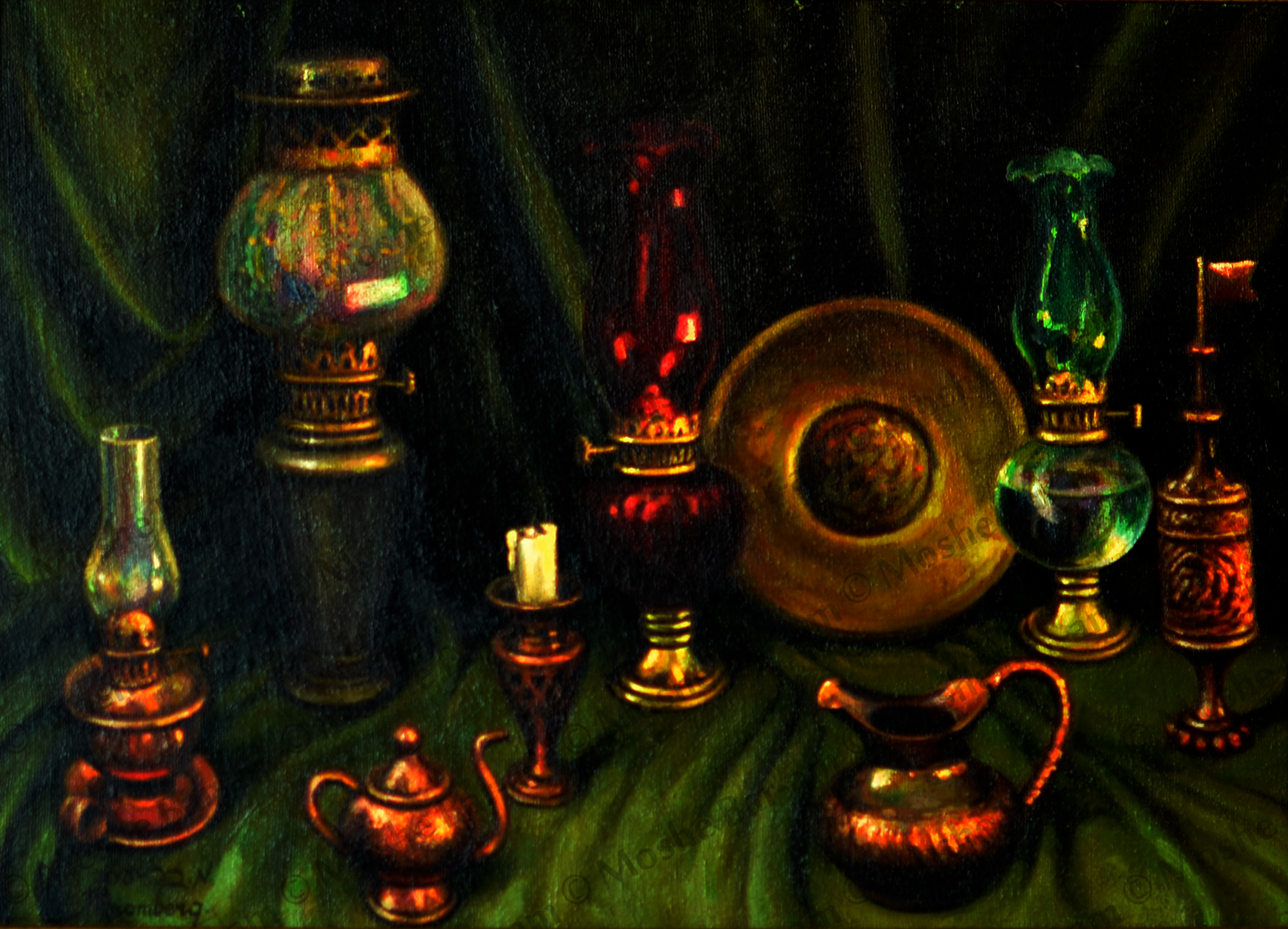 3 Still Life: Lamps, Copper Urns and Cloth Table, 50.5 cm x 70.5 cm, oil on canvas